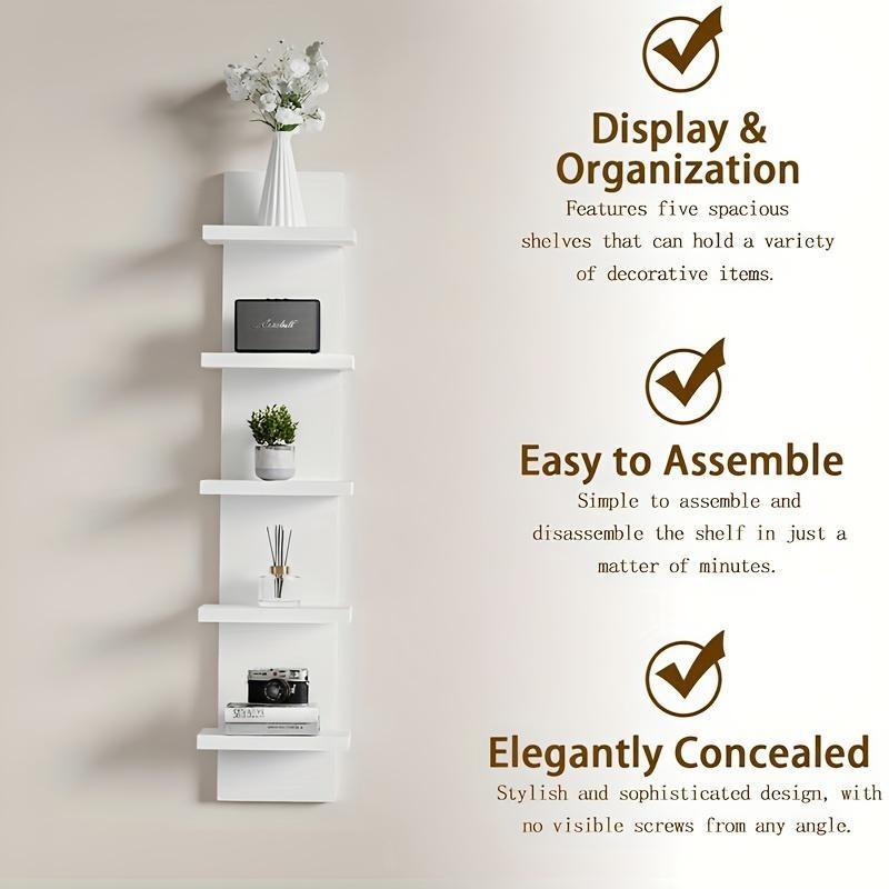 5-Layer PVC Plastic Wall Shelf Unit, Suspended Storage System for Bedroom Living Room Entrance, Upgraded Tower Design for Jewelry and Plants Display